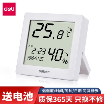 得力(deli) 8813 溫度計(jì)家用室內(nèi)嬰兒房高精度電子溫濕度計(jì)電子鬧鐘 白色