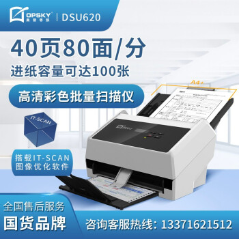 奧普思凱(OPSKY) 饋紙式掃描儀高清彩色雙面連續(xù)大容量自動(dòng)進(jìn)紙辦公設(shè)備發(fā)票文檔多介質(zhì)掃描 DSU620 掃描儀(40頁(yè)80面/分鐘)